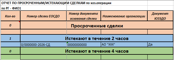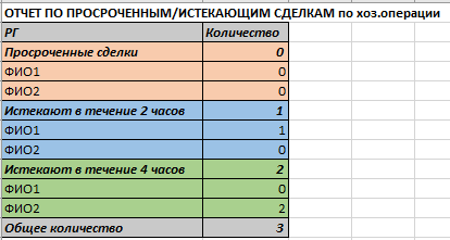 В ЦО БУНУ работает робот, который три раза в день выгружает перечень сделок по исполнителям и направляет на почту руководителя. Задача руководителя – перераспределить сделки, если это необходимо. Отдельное внимание уделяется сделкам с оставшимся сроком обработки в течение четырех и двух часов (см. рис. 1).